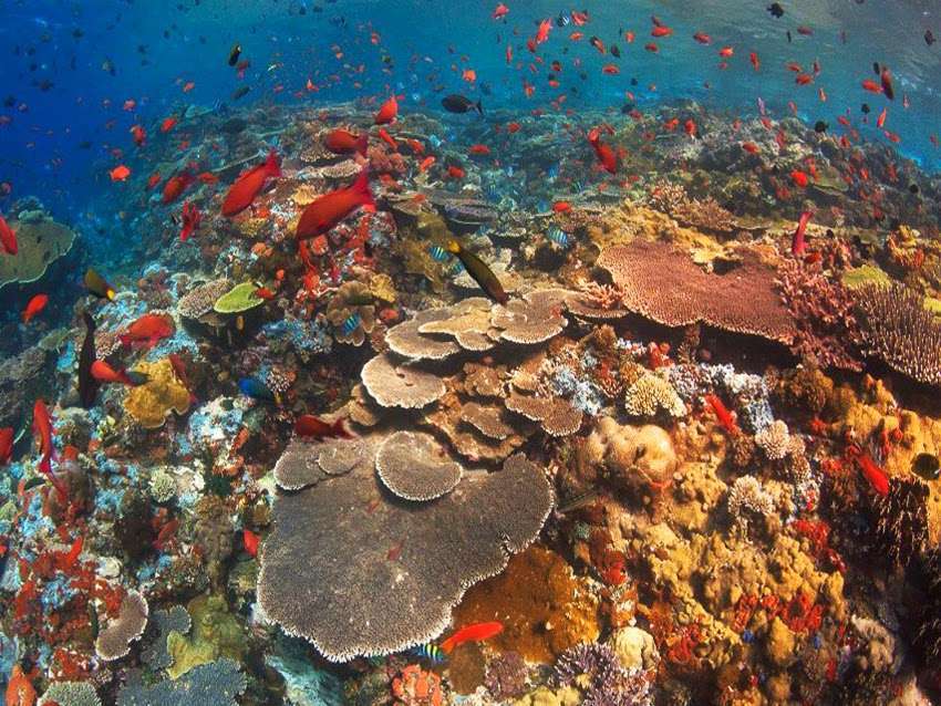 Gamat Bay is also one of the most beautiful scuba diving spots in Nusa Penida. The reason is, the bay is a plateau with a depth of about 8 meters, full of coral. And you will also often see turtles. Hence, a good place to do discovery dives when conditions are good. Especially if there is no current at high tide. And at the exit of the bay was a wall that descended into the sand plain 50 meters deep.